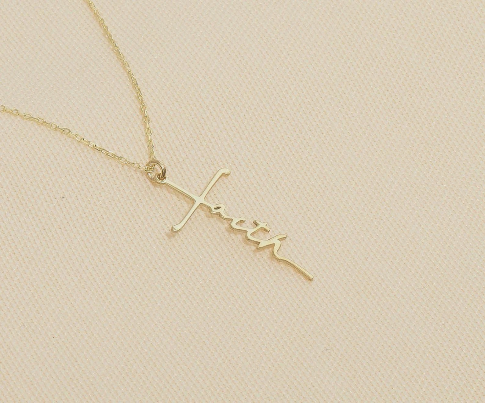 Keep your faith close to your heart with this elegant Gold Faith Cross Necklace. Featuring a unique design where the word “Faith” forms part of the cross, this necklace is a beautiful reminder of strength, hope, and devotion.