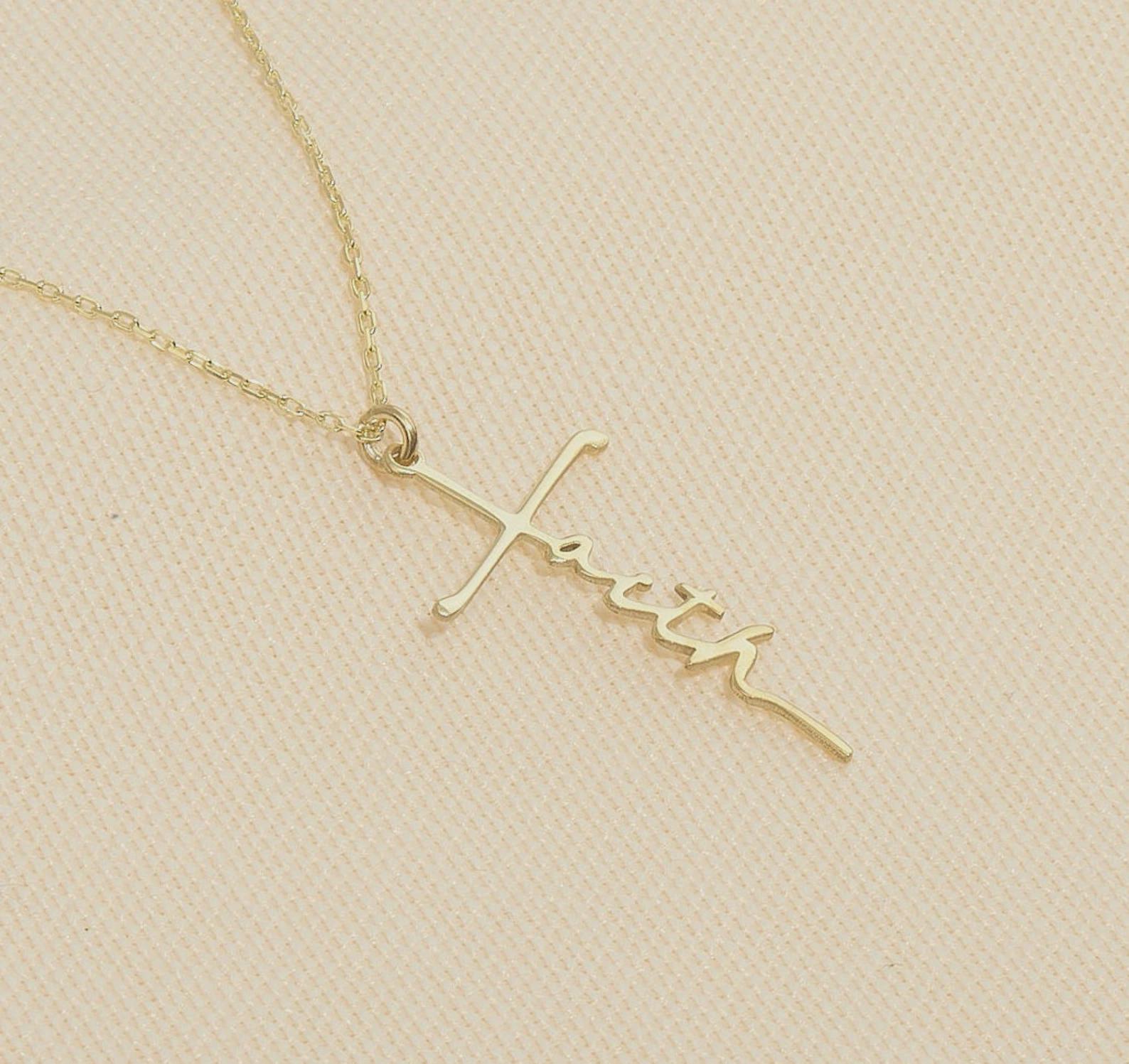 Gold Faith Cross Necklace | Dainty Christian Jewelry for Women | Inspirational Scripture Pendant | Gift for Baptism, Confirmation, Communion