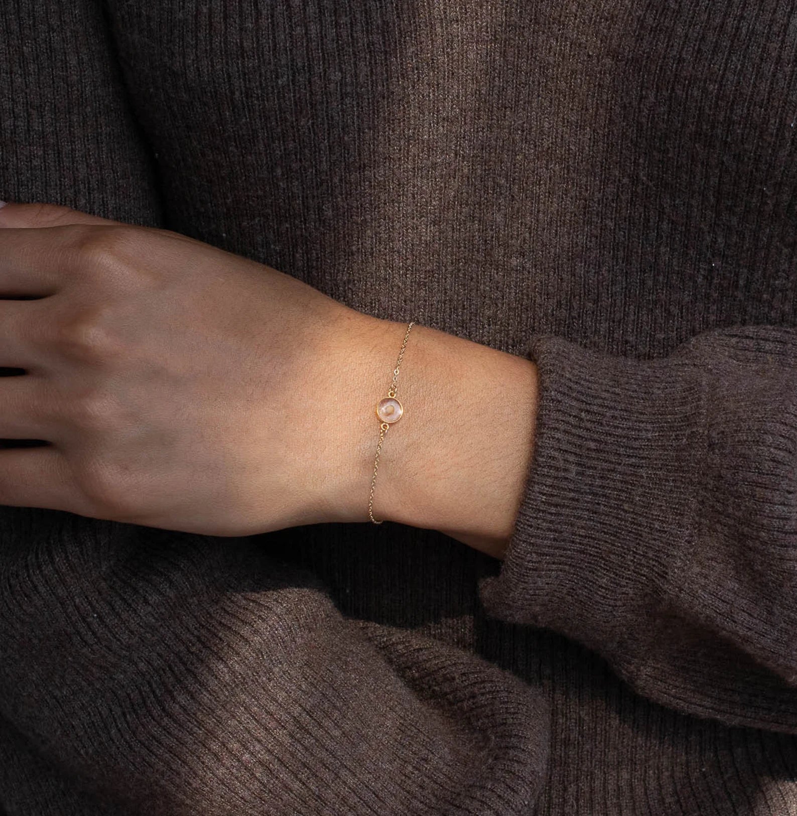 To keep your bracelet shining, store it in a jewelry pouch or box when not in use. Avoid prolonged contact with perfumes, lotions, and water.