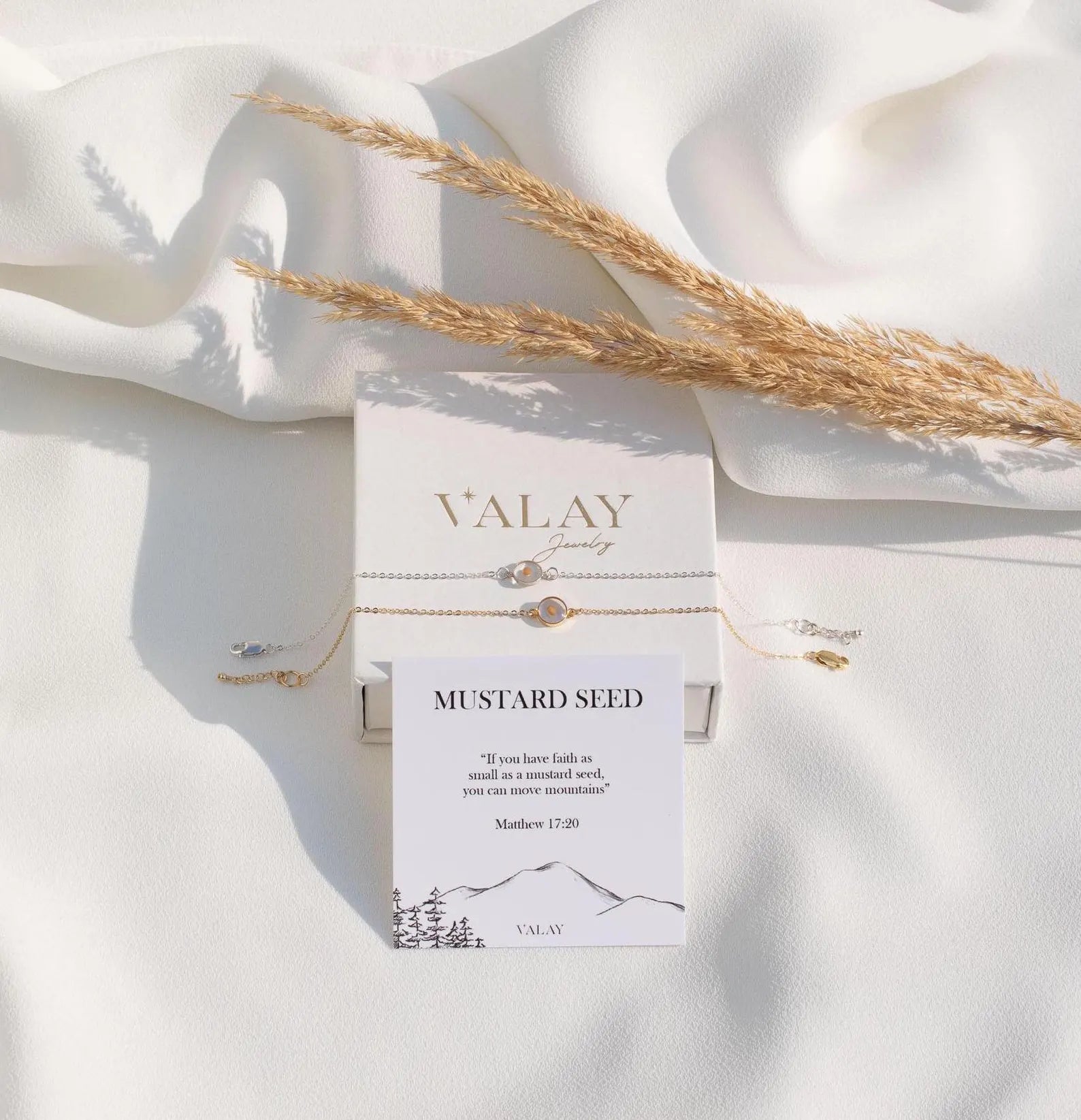 Mustard Seed Bracelet in Gold or Silver | Christian Faith Jewelry | Dainty Religious Gift | Matthew 17:20 Bible Verse Jewelry for Women